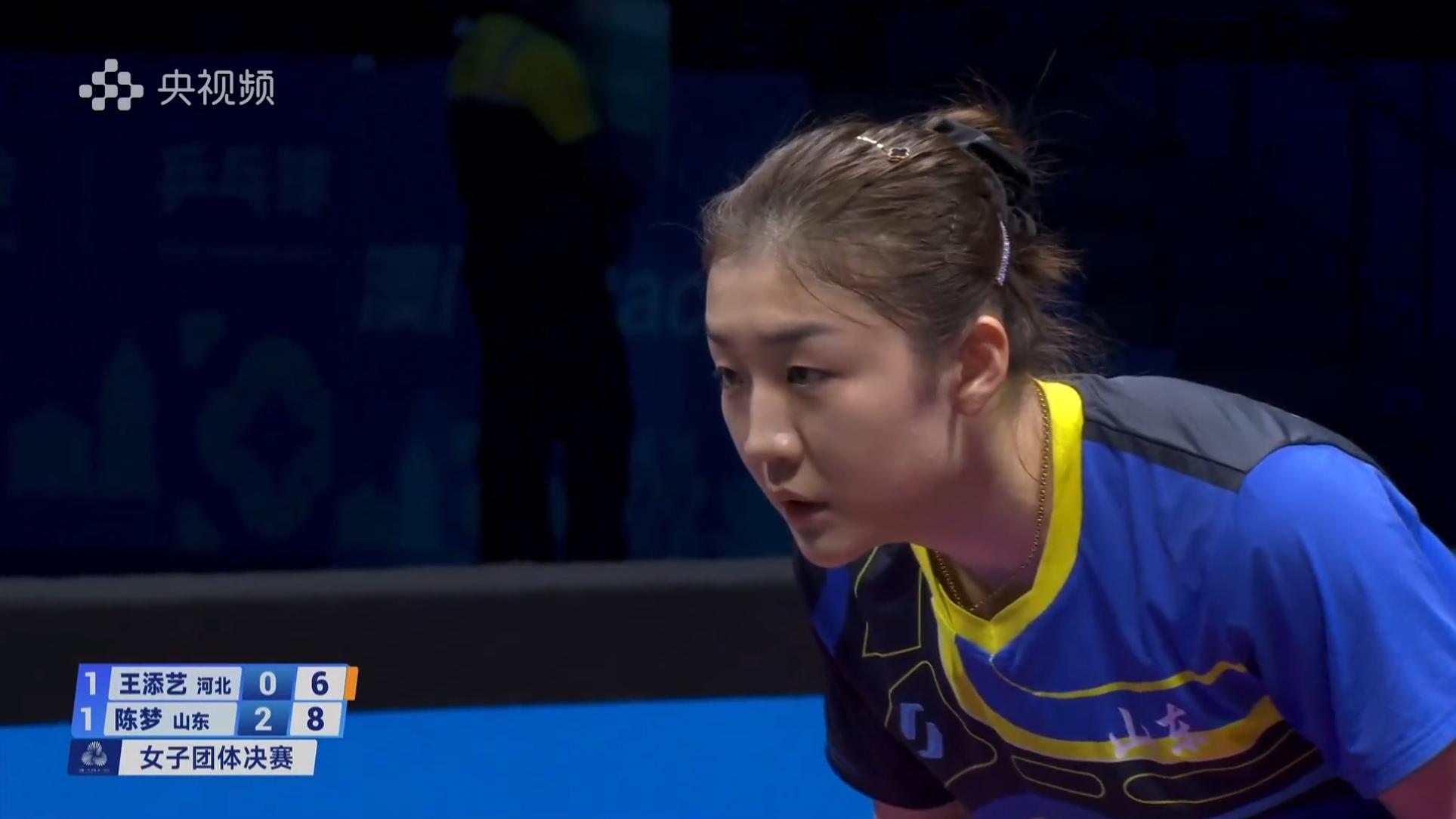 两届奥运冠军陈梦二单登场,河北队王添艺的世界排名,远远不如她的颜值高,面对陈梦的气场和技艺,首局挺到8:11已实属不易,王添艺的“砍式发球”只是个看点,每每咬到中局,在相持中王添艺的吃力感还是比较明显,3:0没有悬念。山东队将大比分带到2:1。