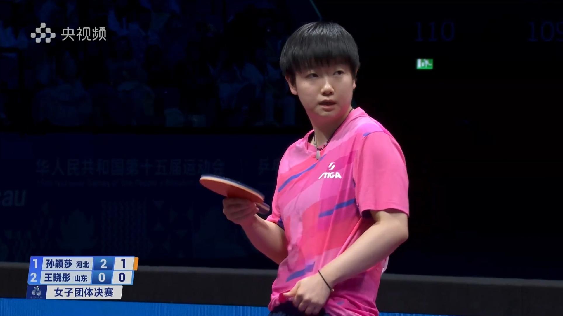 三单孙颖莎再度披挂上阵,面对山东队00后的王晓彤,上来第一局开局送出8:0,11:2带走胜利,是真下狠手了。确实不在一个水准上,毫无悬念的3:0。大比分来到2:2。所以,这场女团决赛的胜负手是四单之争:河北队何卓佳和山东队范思琦。